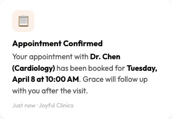 No more calling three different offices to piece together what's happening. Your advocate gives you clear updates on your parent's care so you always know where things stand.